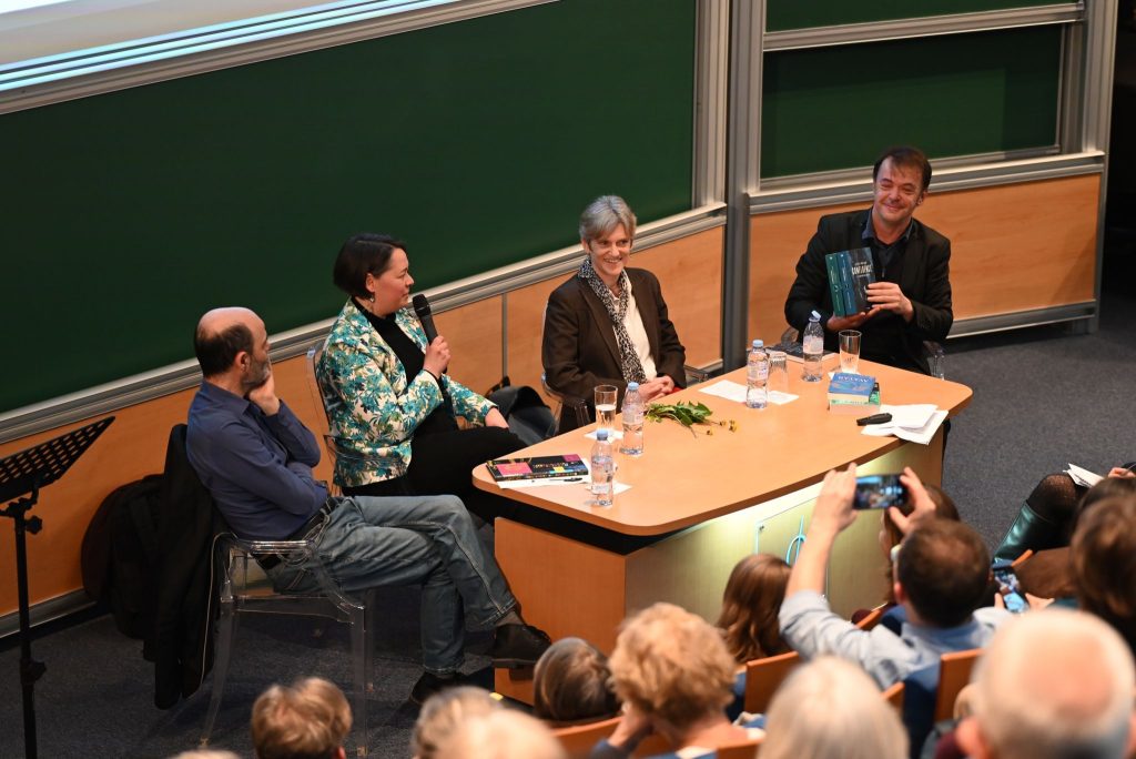 On April 2, IHES had the pleasure of welcoming nearly 130 participants, including around forty students from Rosa Parks High School in Montgeron, for a public roundtable discussion. The event was followed by a cocktail reception, a book sale organized by Librairie Liragif, and a signing session.