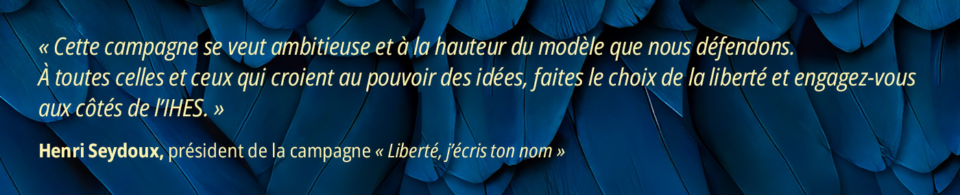 À l'occasion de ses 70 ans, l’Institut des Hautes Études Scientifiques lance sa quatrième campagne majeure de levée de fonds Liberté, j’écris ton nom, avec un objectif inédit de 70 millions d’euros.