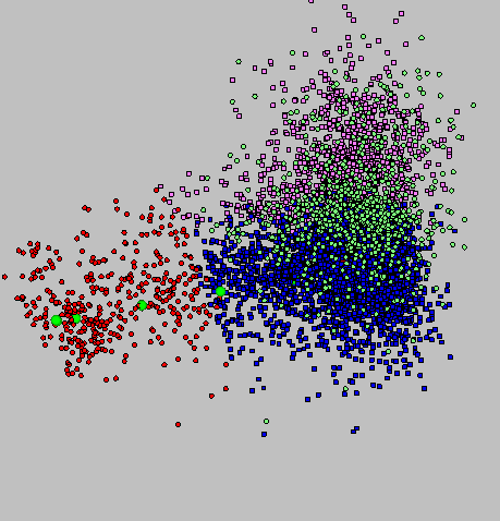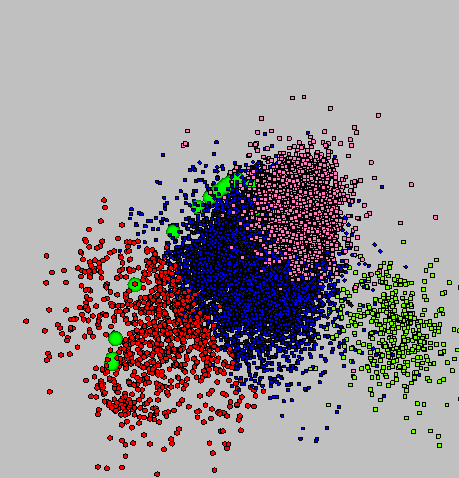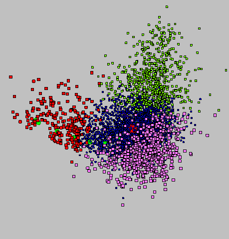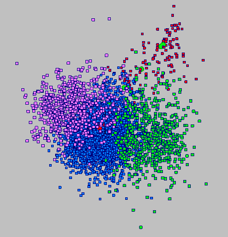Views of projections of 64-dimensional vectors containing codon frequencies in genes