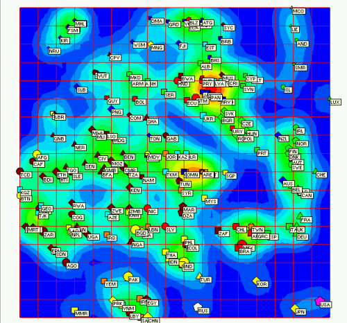 ALOVMAP представляет из себя свободно распространяемую ГИС-систему. В данном проекте она была адаптирована для визуализации данных анализа на мировой карте.